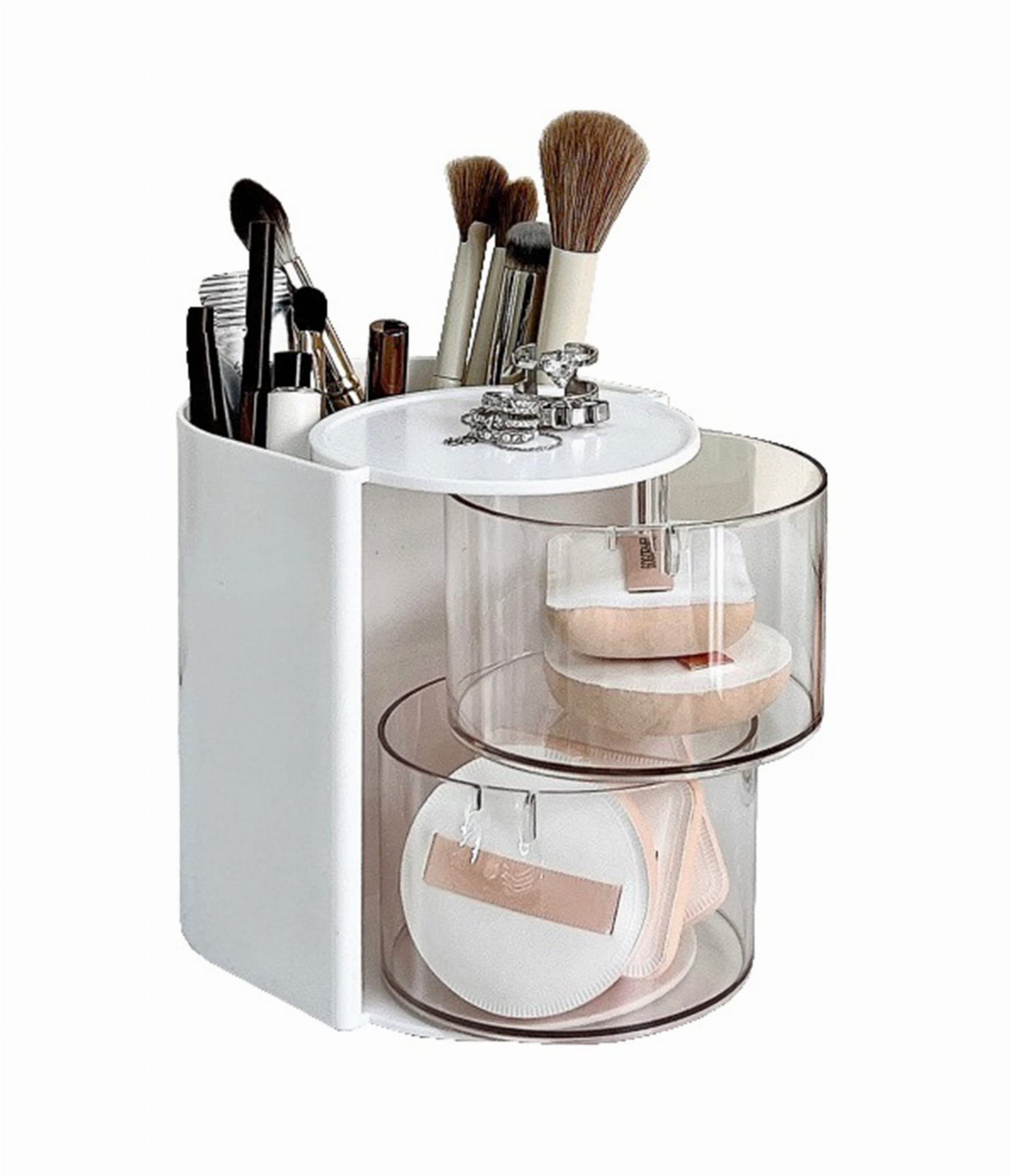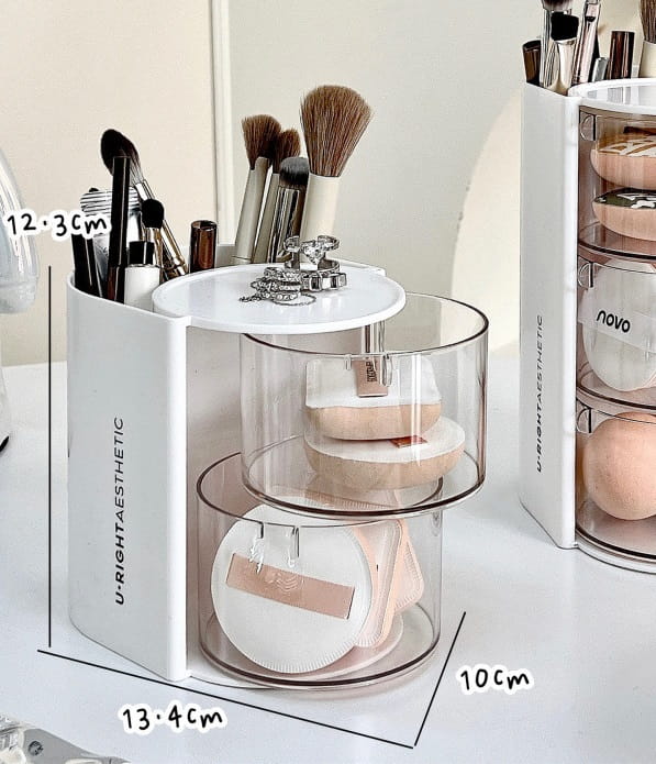 Organizer kosmetyczny z pojemnikami obrotowymi i miejscem na pędzle - 2 poziomy