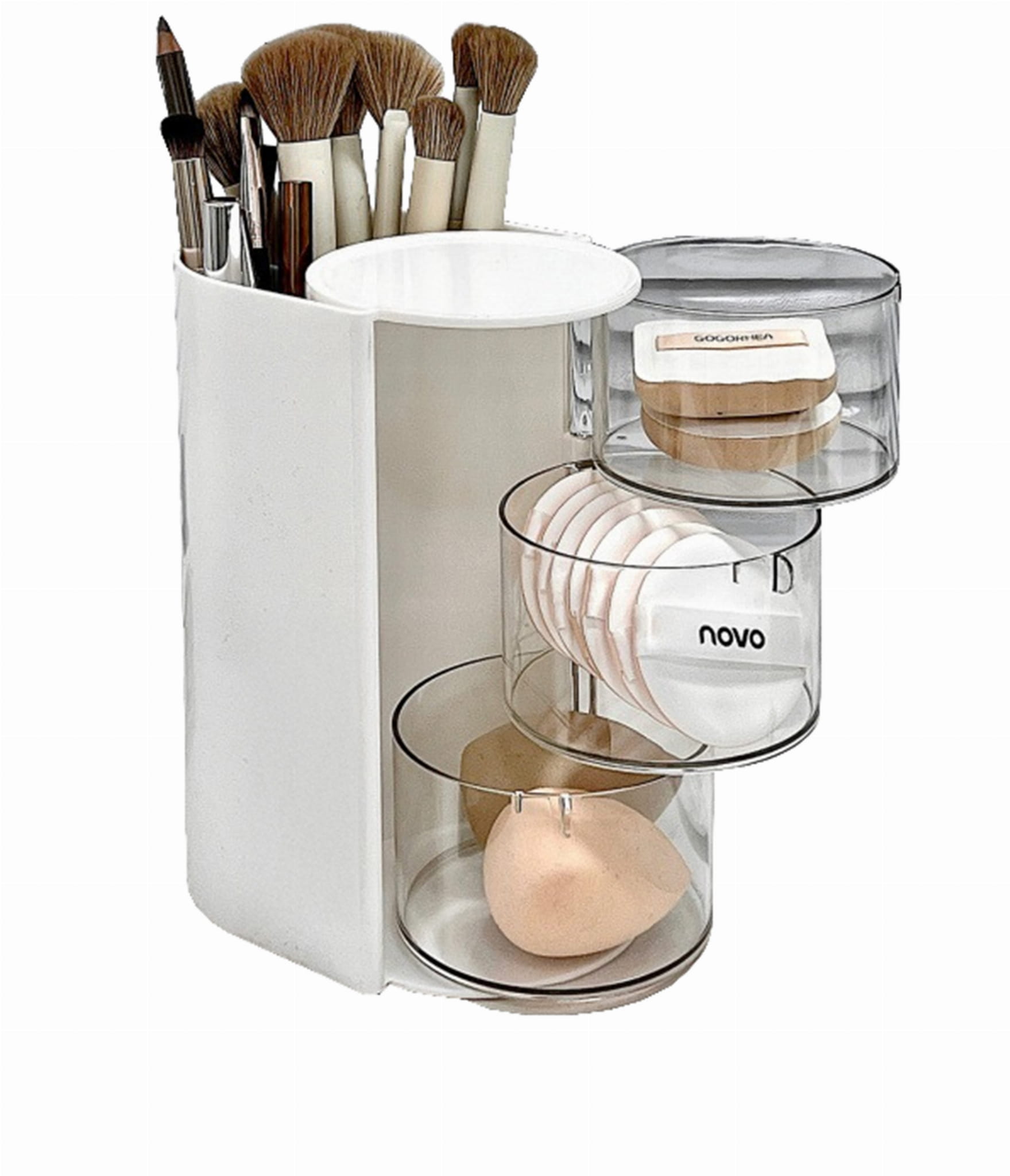 Organizer kosmetyczny biały z obrotowymi pojemnikami i przegrodą na pędzle (3 poziomy)