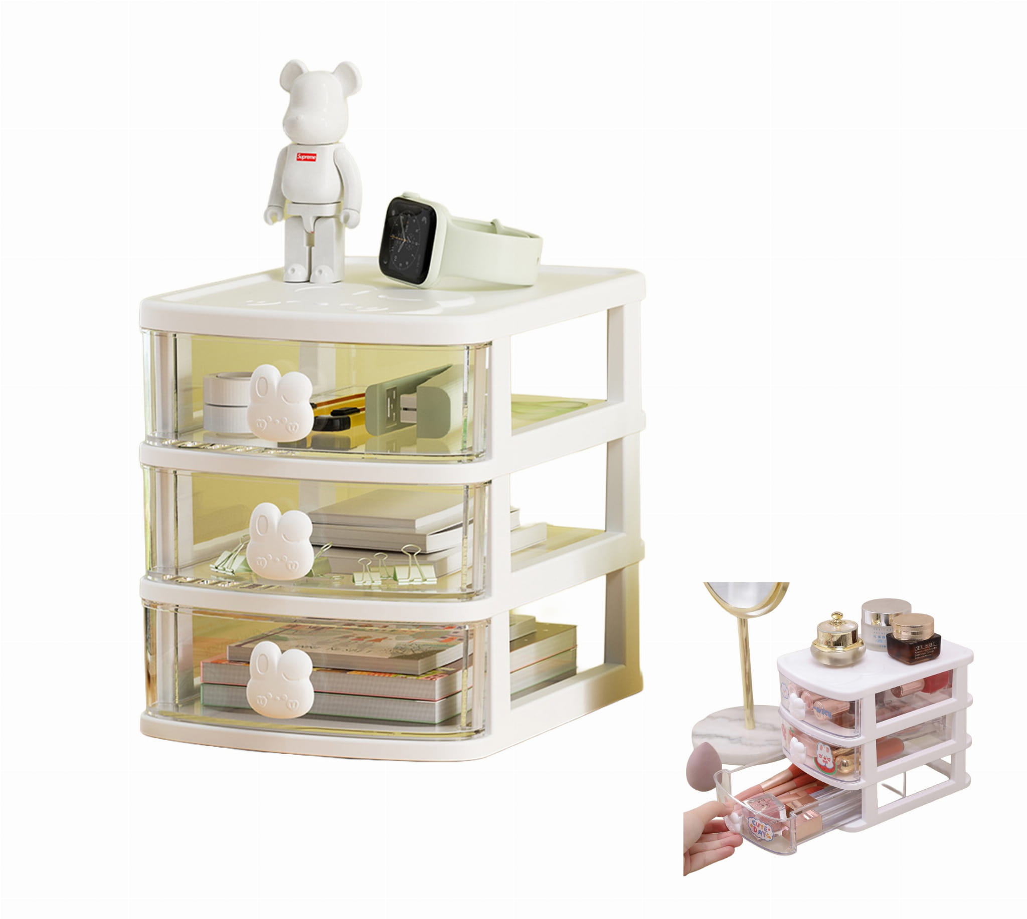 Mini organizer z 3 przezroczystymi szufladkami – porządek w zasięgu ręki!
